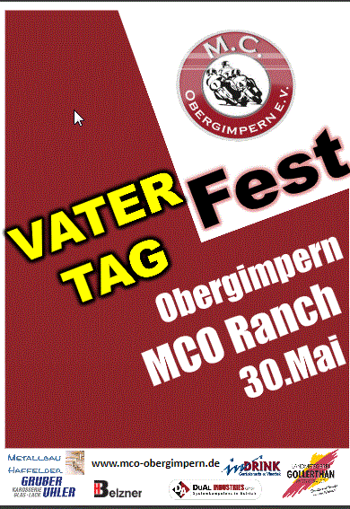 Seit vielen Jahren veranstaltet der MCO alljährlich ein Vatertagsfest auf unserem clubeigenen Gelände mit der darauf befindlichen "Ranch". Dieses Fest erfreut sich großer Beliebtheit aus nah und fern